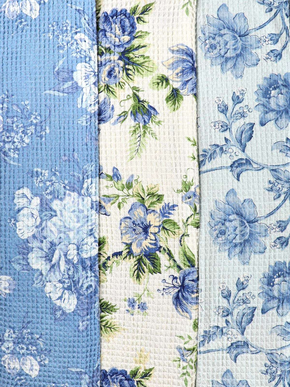 Tea Towel April Cornell Washed Blue Floral Patchwork Tea Towel Bundle of 3
