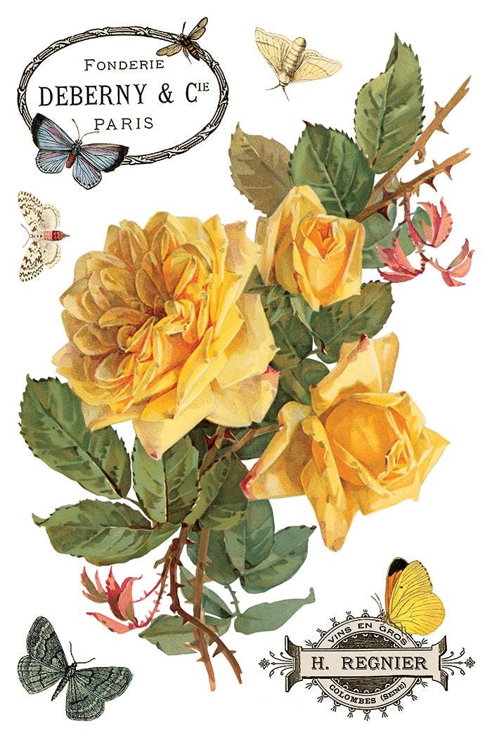 Bring timeless Spring charm to your DIY projects with the IOD By Any Other Name Transfer—a vintage-inspired rub-on decal filled with elegant spring charm. Perfect for cottagecore and French Country decor, furniture makeovers, mixed media crafts, and whimsical journals!