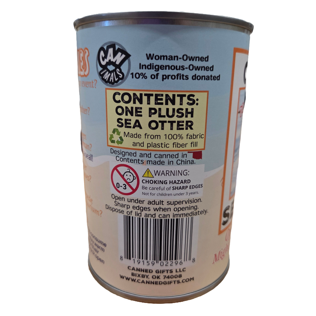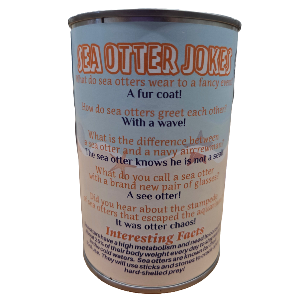 These are super fun and popular with gift shops and novelty and boutique shops! • Dave the Canned Sea Otter. 1 plush sea otter sealed in a soup can. Your choice of lid style: pop, standard, or foil. • Eco-Friendly: Sea otter is made out of recycled plastic water bottles. • Plush measures approx. 5 inches. • Funny sea otter jokes and interesting facts on the can. • Designed and canned in the USA. Labels made in USA. Sea otter made in China. sea otters coastal treasure gift coast ocean saltwater bay waves tourist tourism stuffed animals gifts kids toys mom summer teacher appreciation gifts fathers day gifts birthday kids birthday toys for kids unique gifts seaotters ecofriendly recycle recycled marine aquatic kelp coastal wildlife wild life water conservation ecosystem California Pacific Ocean Alaska Washington coast waters mammal mammals sea weed *Testers are a open can with the plush prepared for display