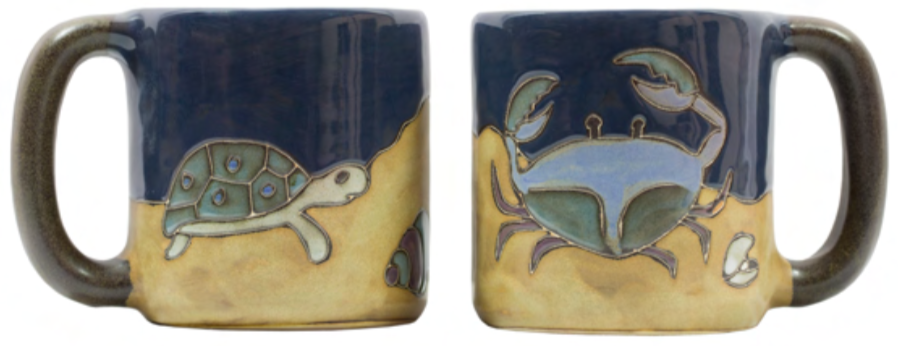 This Mara mug design is a great way to start your day and hails from our popular hand-etched, glazed and finished mug collection! 4.5 inches tall and holds up to 16 oz. Microwave and dishwasher safe, with lead-free paint. Made in Mexico.