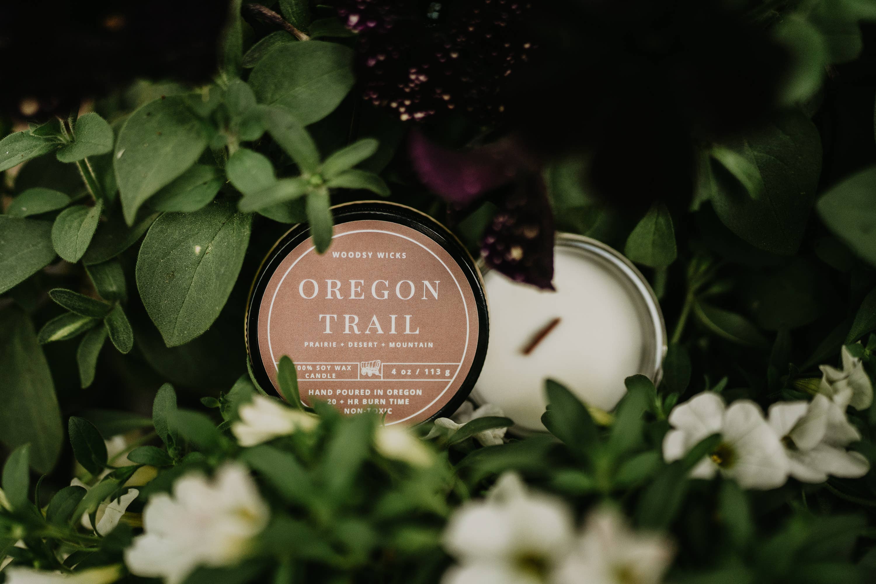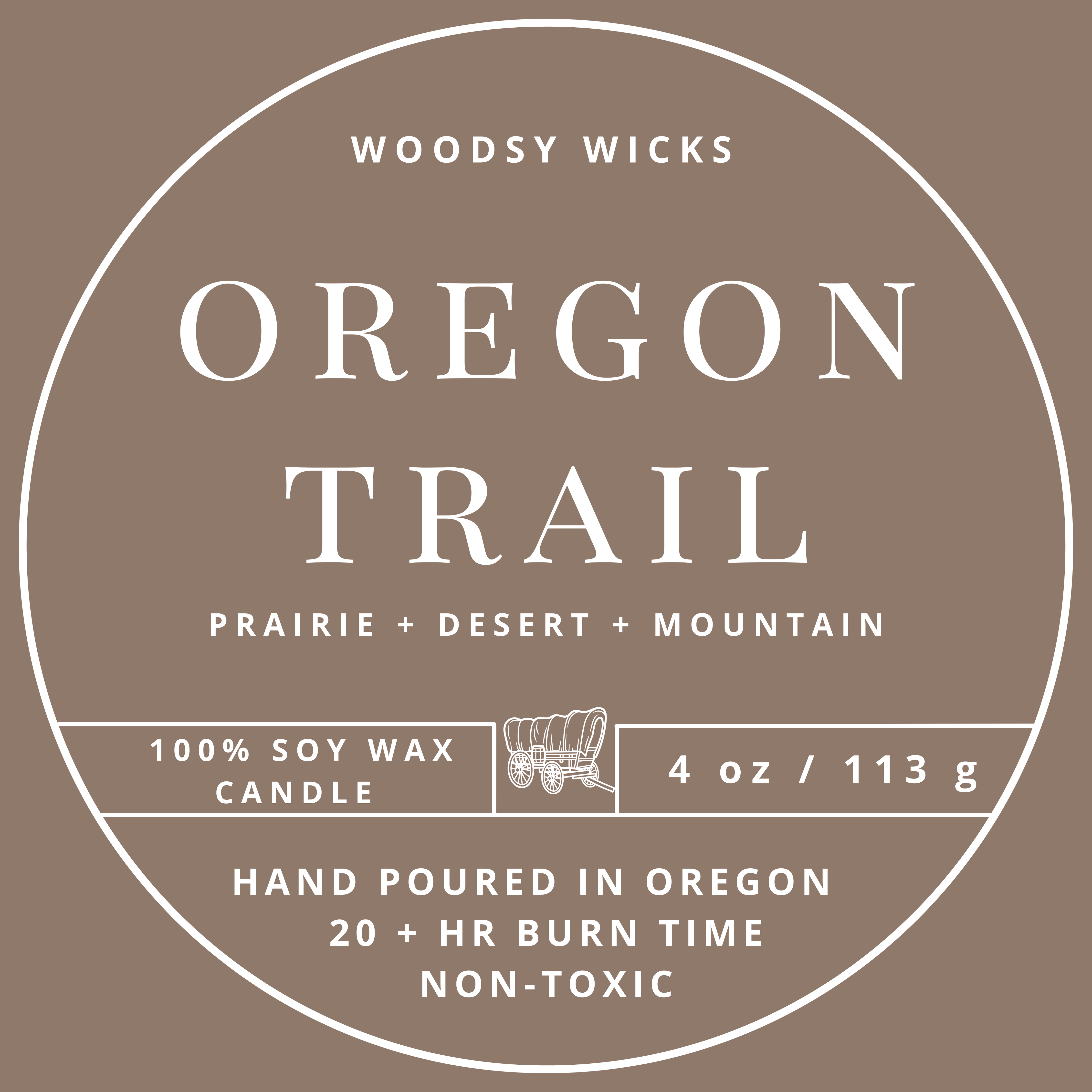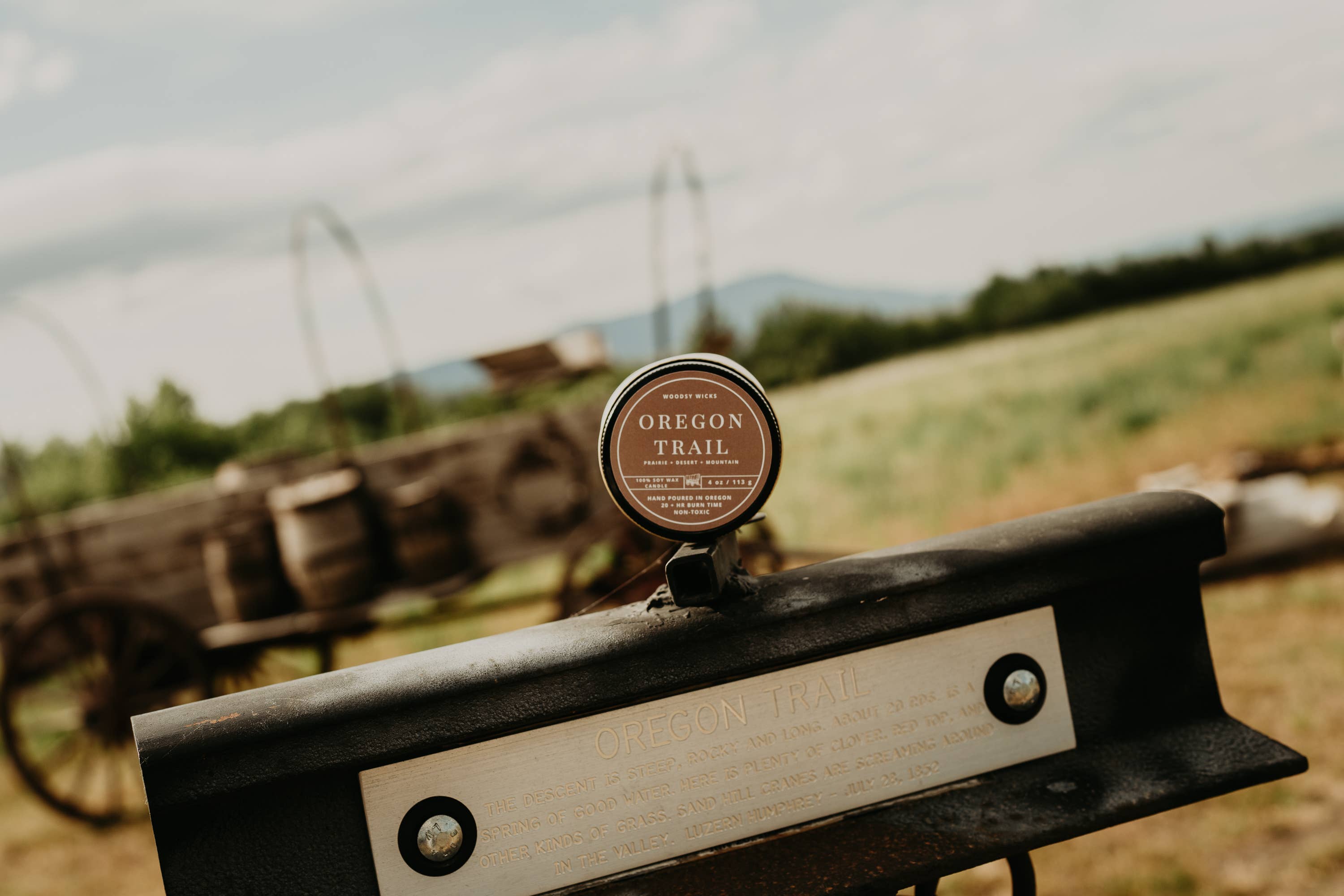 Our Oregon trail candle is a lovely mix of fresh green grass from a prairie, mountain air with pine trees, and the deserts that were crossed by pioneers.
