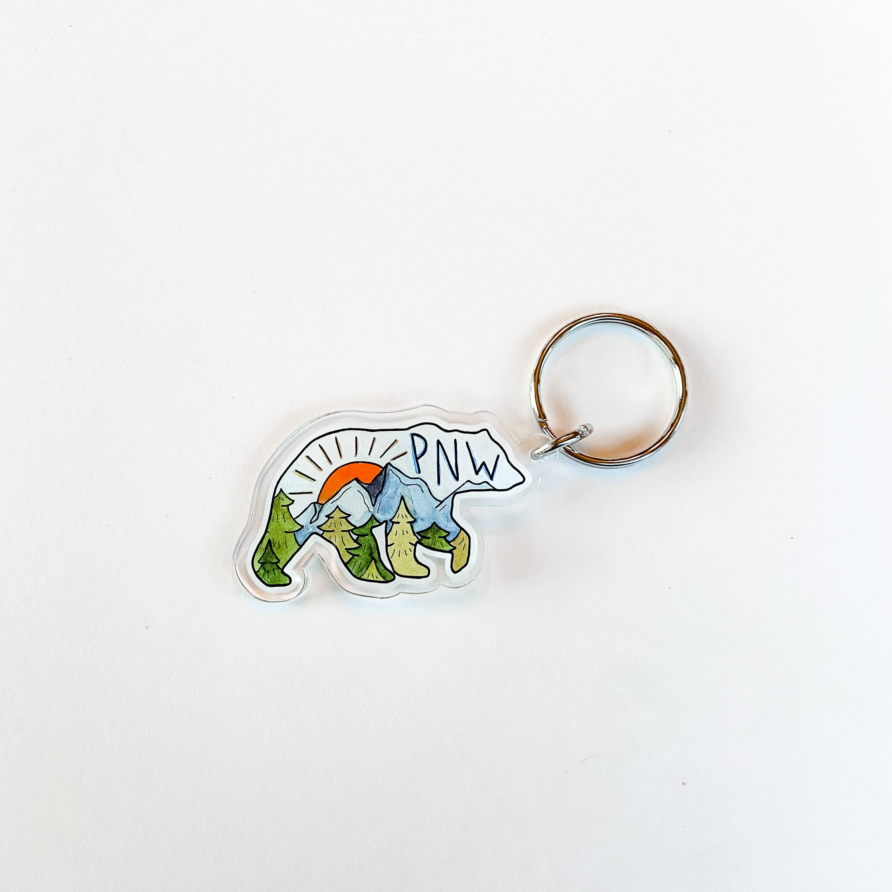 - Keychain is made of a thick, durable acrylic plastic with a UV laminate that protects the design from scratching, rain and sunlight.