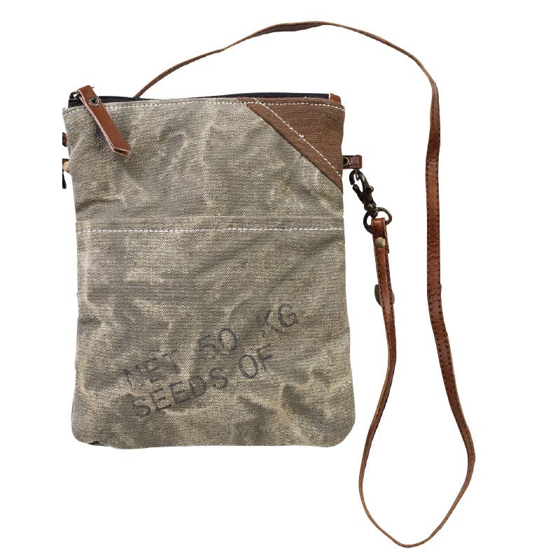 Clea Ray Canvas Bags & Clothing presents the Seed Passport, a unique accessory designed for the modern traveler. This passport case is not just a functional item, it's a fashion statement. Measuring 6.5" x 8.25", it's the perfect size to hold your passport and other essentials, while easily fitting into your bag or pocket. Made from repurposed military tent and canvas, it's a sustainable choice that doesn't compromise on style. Whether you're a globe-trotting adventurer or an urban explorer, this unisex passport case is a must-have accessory. Travel with convenience and confidence with Clea Ray.