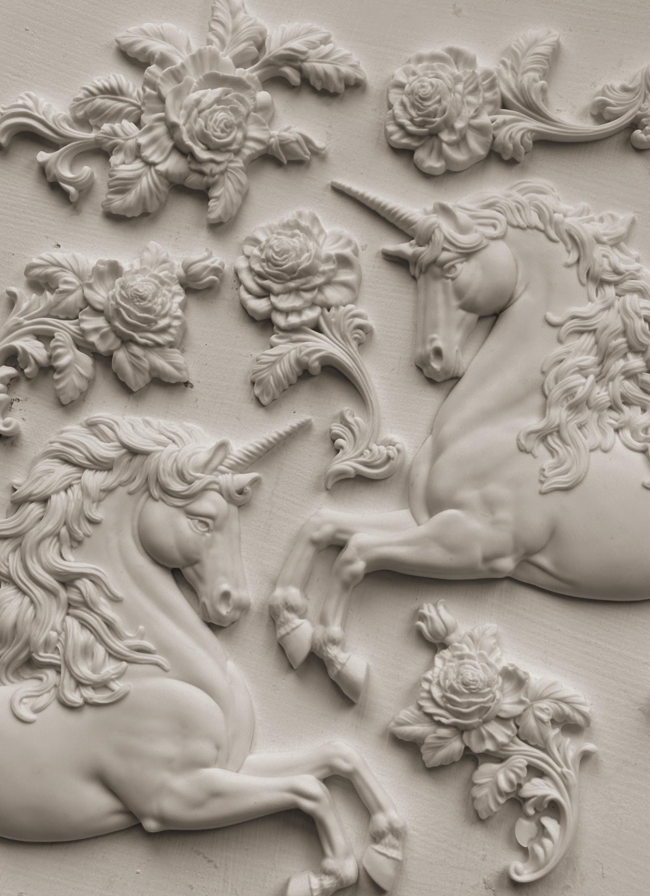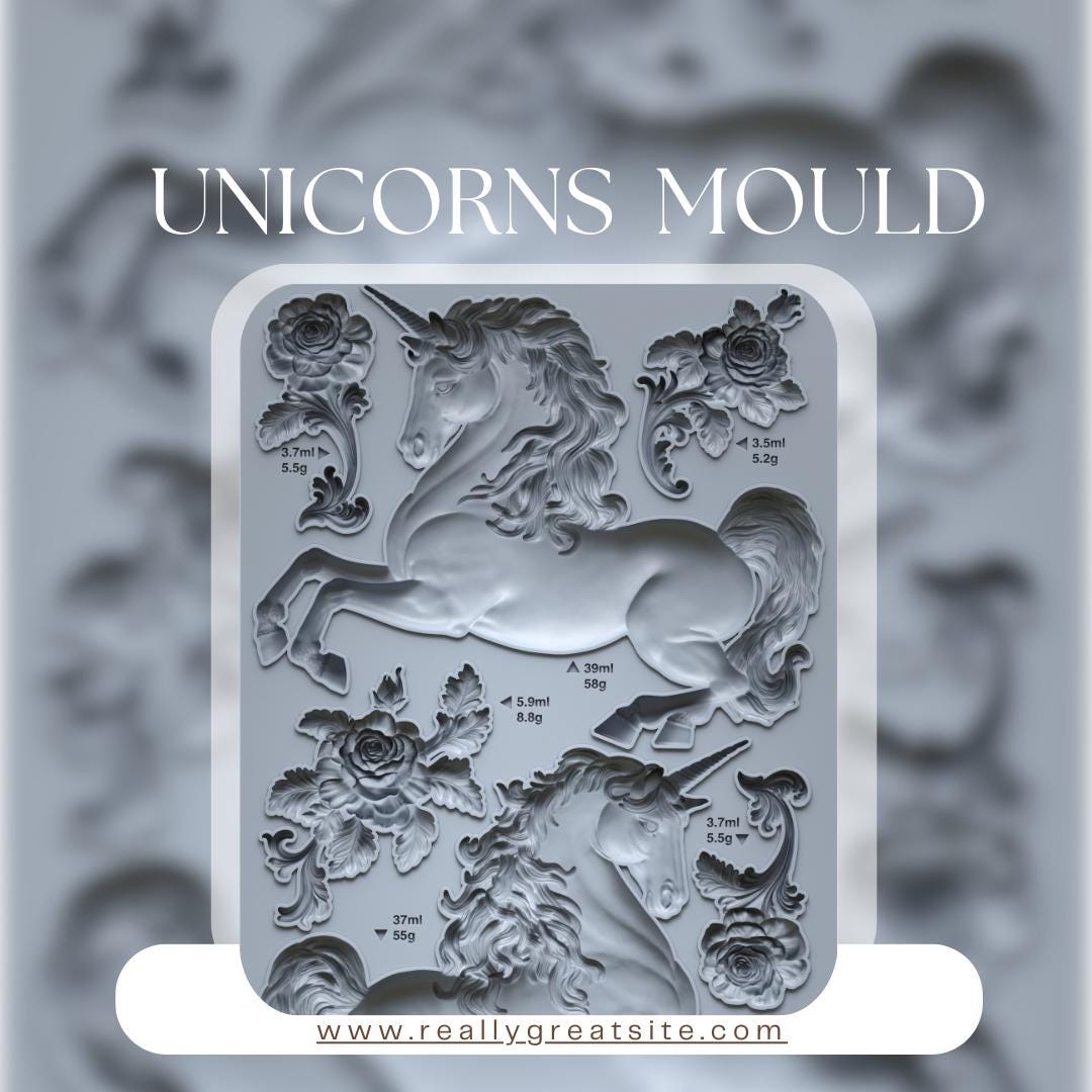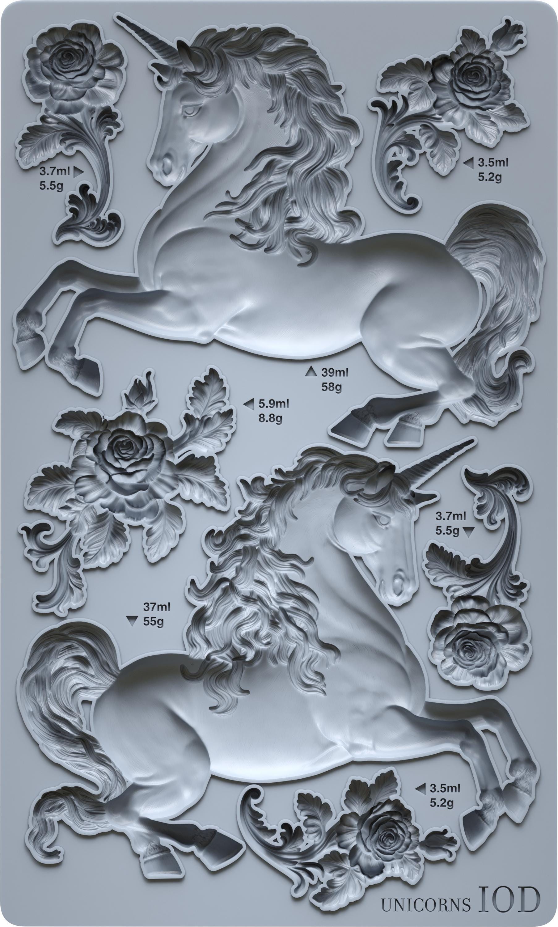 UNICORNS New IOD Summer Iron Orchid Designs silicone mould embellishment applique onlay for furniture home décor mix media art and craft