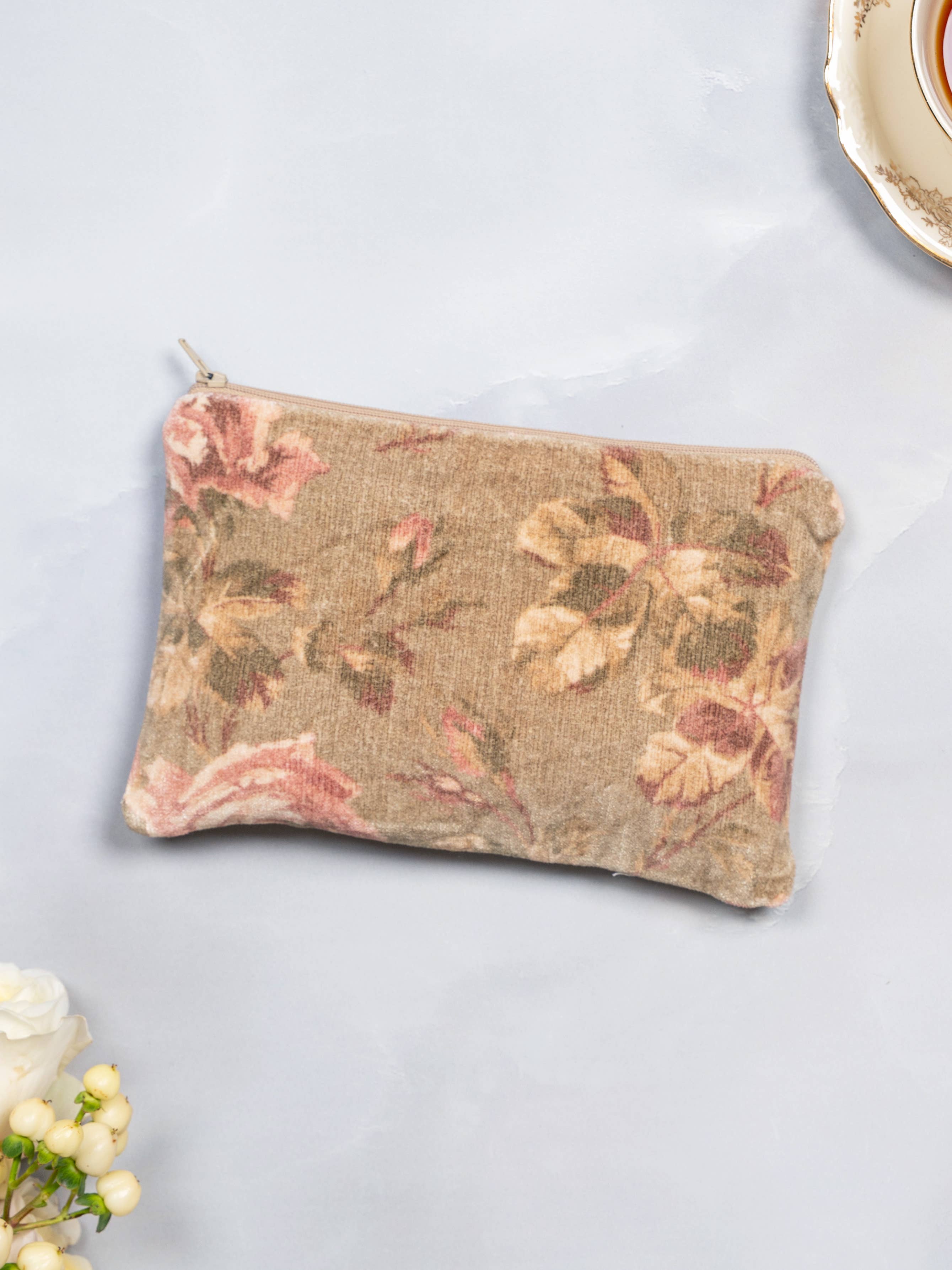 Aril Cornell CollectionVintage Rose Velvet Pouch - Olive