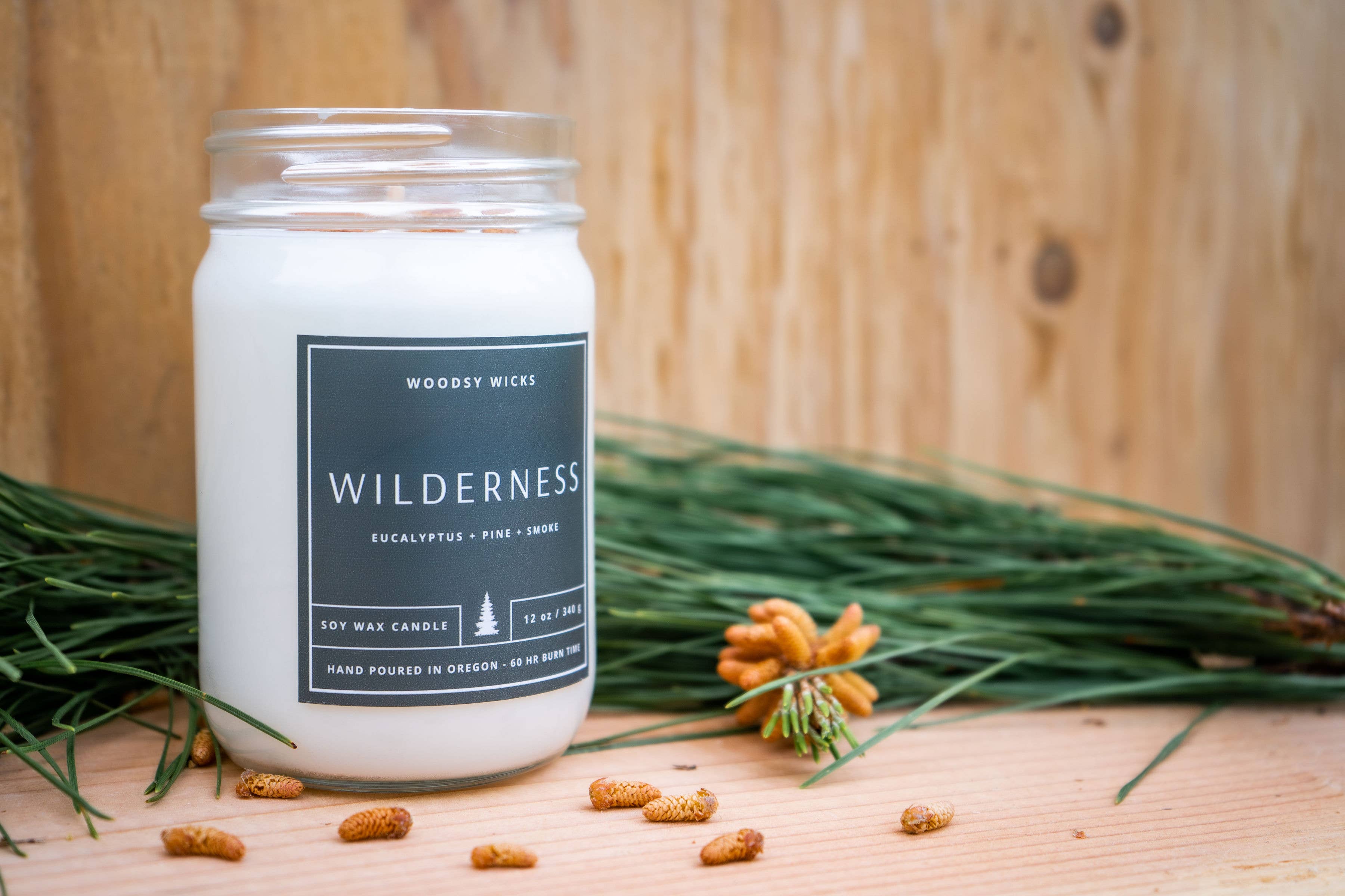 Wilderness Candle Soy Wax Candle - Non-Toxic - Tree Scent: 12oz / Wood Wick